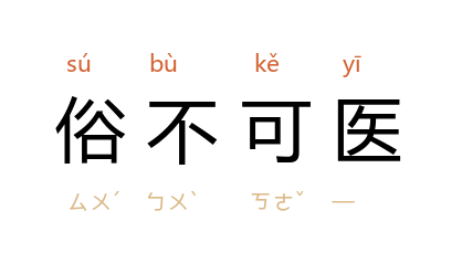 ⒈ 人若庸俗,则不可救药。语出宋苏轼《于潜僧绿筠轩》诗:“无肉令人瘦,无竹令人俗。人瘦尚可肥,士俗不可医。”