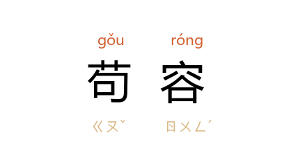 引《荀子·臣道》:“不恤君之荣辱,不恤国之臧否,偷合苟容以持禄养交而已耳,谓之国贼。”宋 苏轼 《上韩太尉书》:“天下之人,幸而有不为阿附苟容之事者,则各为倜儻矫异,求如 东汉 之君子,惟恐不及,可悲也已!”清 薛福成 《叶向高论》:“自 嘉靖 以后,或偏尚才气,而见摈清议,或依阿苟容,而漫无建白。”