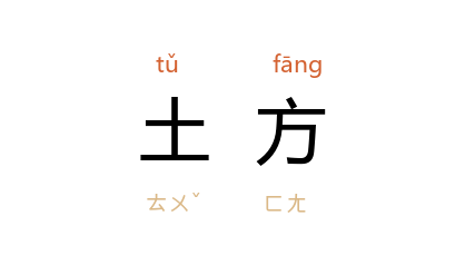 ⒊ 量词。计算泥土体积的单位。一立方公尺为一土方。