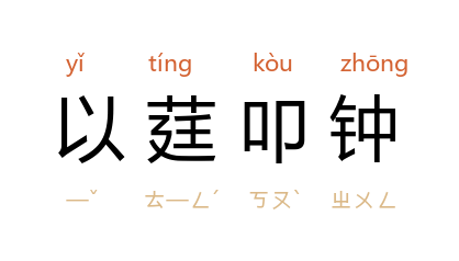 ⒈ 莛,草茎。以莛叩钟指用草茎去撞钟,毫无作用。比喻自不量力。也作「以莛撞钟」。