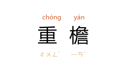 ⒈ 亦作“重檐”。亦作“重櫩”。