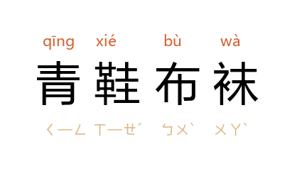 ⒈ 用青布制成的鞋袜。指平常人家的装扮。比喻简朴的隐逸生活。唐·杜甫〈奉先刘少府新画山水障歌〉:「吾独胡为在泥滓?青鞋布袜从此始。」也作「布袜青鞋」。