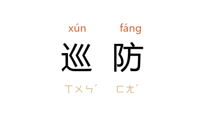 引《宋史·刑法志一》:“若驱虏官吏巡防人等,不以伤与不伤,凡情不可贷者,皆处以死刑。”《快心编二集》第五回:“先闻得贼兵四起,已是练兵较武,昼夜巡防。”《清史稿·兵志九》:“乃商拨兵舰一艘,巡防 牛庄 海口。”