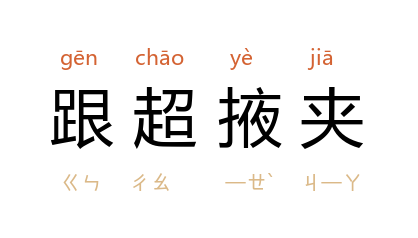 ⒈ 语本《孟子·梁惠王上》:“挟太山以超北海。”后以“跟超掖夹”形容富于勇力。