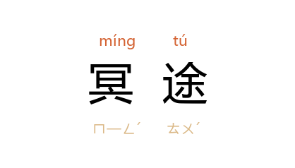 引《敦煌变文集·大目乾连冥间救母变文》:“惭愧闇梨至此间,弟子处在冥途间。”明 徐霖 《绣襦记·剔目劝学》:“我在冥途回转,尚兀自心头火燃。”清 钱学伦 《语新》卷上:“相传生前在庙执事,死如其故,不受冥途苦恼。”