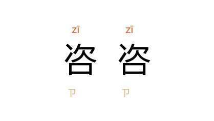 ⒉ 仔细。元·无名氏〈赏花时·卧枕著床染病疾套〉:「忽见人来敢是他,只恐有争差,咨咨认了,正是那娇娃。」也作「孜孜」。