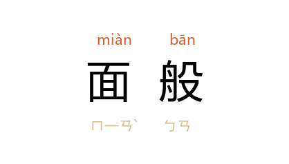 引清·洪亮吉《晓读书斋杂录初录·卷上》:「吴中人呼人面四周为面般。三国魏·如淳·汉书注:『般读如面般之般。』则方言、俗语亦皆有本。」