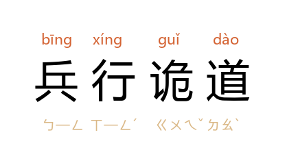 《水浒传·第七九回》:「自古兵书有云:『兵行诡道』,岂可用得正大?」