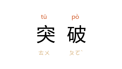 英语to break through, to make a breakthrough, to surmount or break the back of (a task etc), (of ball sports) to break through a defense