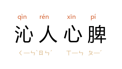 亦省作“沁脾”、“沁心”。 清 金农 《携客步至七柿滩望樊山》诗:“沁脾向花水,张腋立风林。”
