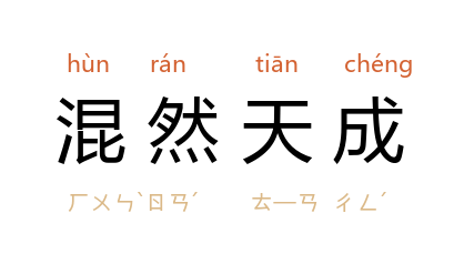 引宋 罗大经 《鹤林玉露》卷一:“余家藏 山谷 八大字云:‘作德日休,为善最乐。’摘经史语,混然天成,可置座右。”宋 葛立方 《韵语阳秋》卷一:“鼻无堊,斤将曷运?目无膜,篦将曷施?所谓混然天成,天球不琢者歟?”宋 严羽 《沧浪诗话·诗评》:“《胡笳十八拍》混然天成,絶无痕迹,如 蔡文姬 肝肺间流出。”