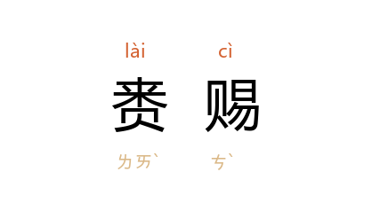 引《新唐书·锺绍京传》:“明日,进中书令、 越国公,实封五百户,賚赐与 刘幽求 等。”《元史·赵炳传》:“王还自北,嘉赏战功,賚赐有加。”明 陆采 《明珠记·饮药》:“谁想朝廷把爹妈害了,今日又差使臣賚赐奴家药酒自尽。”