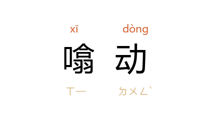 引草明 《乘风破浪》五:“十几张嘴没有一张噏动,只有室外的第二遍钟响和锣鼓声音一下一下地敲打在这十几个人的心坎上。”茹志鹃 《剪辑错了的故事》五:“他那矇眬的两眼,一动不动地望着一个地方……只是偶而噏动着嘴,象是在跟人说话。”郭澄清 《大刀记》第十七章:“挺立面前垂手而站的 小志勇,两个厚墩墩的鼻翅膨胀着,噏动着,宛如一匹刚刚在沙汤上驰骋过的战马。”