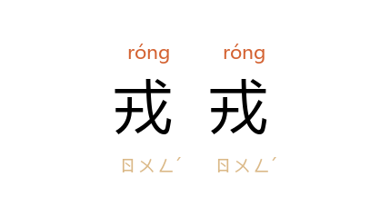 引汉·张衡〈冢赋〉:「乃树灵木,灵木戎戎。」唐·杜甫〈放船〉诗:「江市戎戎暗,山云淰淰寒。」