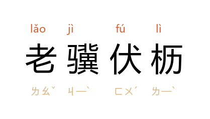 引三国 魏 曹操 《步出夏门行》:“老驥伏櫪,志在千里。烈士暮年,壮心不已。”
