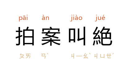 引《红楼梦·第七〇回》:「众人拍案叫绝,都说:『果然翻得好气力,自然是这首为尊。』」《儿女英雄传·第二三回》:「当下邓九公听了,先就拍案叫绝。」