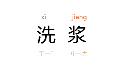 引元 无名氏 《硃砂担》第三折:“这一宗是个开洗糨铺的,把人的好衣服或是洗白,或是 高丽 復生縑丝,他着那铁熨斗都熨破了。”《说岳全传》第四六回:“他夫妻两个……饮食全无措办,只靠 王氏 与这些小番们缝补缝补,洗浆洗浆,觅些来糊口。”沙汀 《兽道》:“魏老婆子 拖着湿漉漉的两手站立起来。她已经看见她们,吃了一惊,立刻停止了洗浆衣服。”