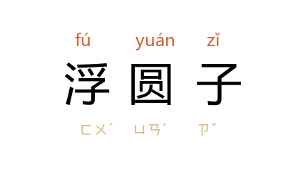 ⒈ 泛指用米粉制成的圆子。因其熟即上浮,故称为「浮圆子」。如汤圆、元宵。