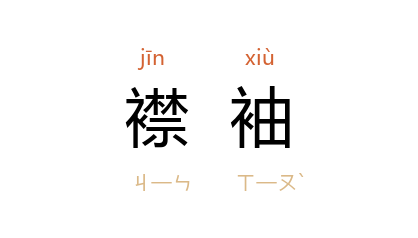 引南朝 宋 谢惠连 《白羽扇赞》:“挥之襟袖,以御炎热。”唐 杜牧 《秋思》诗:“微雨池塘见,好风襟袖知。”宋 辛弃疾 《感皇恩·滁州寿范倅》词:“三山归路,明日天香襟袖。”