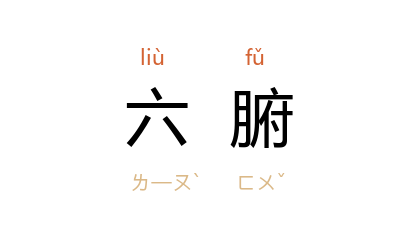⒈ 胆、胃、大肠、小肠、三焦、膀胱六个器官的合称。