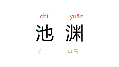 ⒈ 池和渊。泛指江河湖泽。 汉 刘向 《说苑·政理》:“公仪休 相 鲁,鲁 君死,左右请闭门。