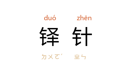 引明 刘若愚 《酌中志·内臣佩服纪略》:“鐸针,金银、珠翠、珊瑚皆可为之。年节则大吉胡芦、万年吉庆,元宵则灯笼……单一枚有錞,居官帽中央者是也。”明 蒋之翘 《天启宫词》:“鐸针新样团双凤,吉字口衔青亚姑。”自注:“鐸针以金银、珠寳镶成,近侍钉居帽中。其名有大吉葫芦、万年吉庆等名。”