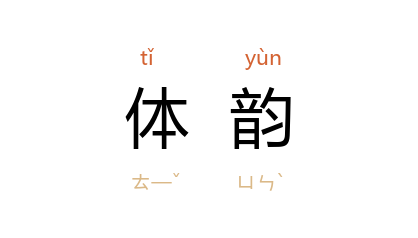 引《晋书·王坦之传》:“意者以为人之体韵犹器之方圆,方圆不可错用,体韵岂可易处!”《北史·宋弁传》:“以为志气謇諤不逮 李彪,而体韵和雅,举止闲邃过之。”明 顾起元 《客座赘语·书法》:“许伯伦 行狎书,师 孙过庭,劲媚错出,圆熟温茂,如 王 谢 儿郎,皆有体韵。”