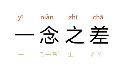 ⒈ 一个念头的差错,导致严重后果。宋·陆游〈丈人观〉诗:「我亦宿诵五千文,一念之差随世纷。」也作「一念之错」。