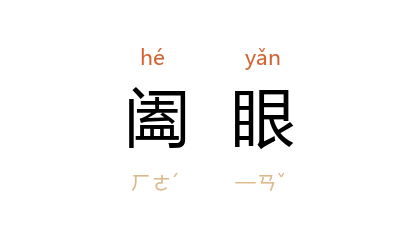 引周而复 《上海的早晨》第三部二:“他兴奋得一宿没有阖眼。”李瑛 《海防晨号·熄灯号》诗:“呵,我们美丽尊荣的 北京,也请你轻轻地、轻轻地阖眼。”
