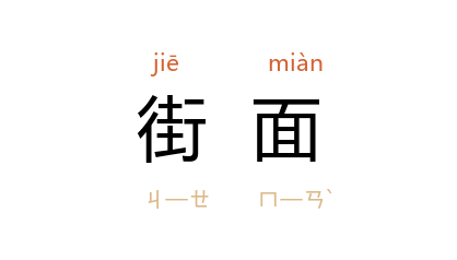 引郭希仁 《从戎纪略》:“须臾街面鼓譟起, 张世瑗 被戕,匪众拥至署内,以土枪向内轰击。”沙汀 《困兽记》二四:“现在,他又向街面望过去:一切照常,他不能够从人们的表情上发现一点碰上了甚么重要有趣的消息时惯有的神气。”