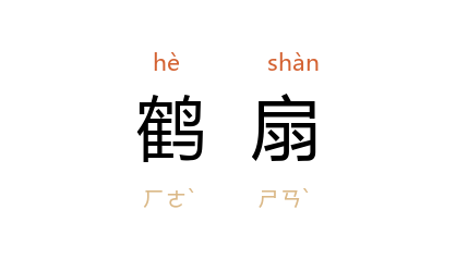 引唐 温庭筠 《晓仙谣》:“遥遥珠帐连 湘 烟,鹤扇如霜金骨仙。”宋 钱惟演 《致斋太乙宫》诗:“鹤扇真规月,仙衣可缕冰。”宋 陆游 《老学庵笔记》卷九:“西壁,从东第一架六物:曰如意、曰玉斧、曰鹤扇二、曰旛、曰丝拂。”
