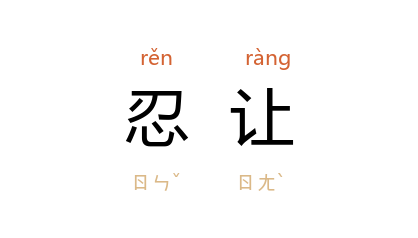 引清 王士禛 《池北偶谈·谈献二·魏尚书格言》:“恭谨忍让,是居乡之良法。”范文澜 蔡美彪 等《中国通史》第二编第二章第六节:“西汉 前期,朝廷一直采取和亲政策,对 匈奴 忍让,企图换取边境的暂时安静。”