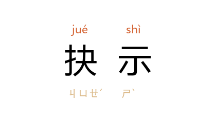 引茅盾 《追求》七:“虽然刚才 史循 的话抉示了一个不可否认的真实,会使她心里一跳,此事便也完全消散。”茅盾 《对于文坛的一种风气的看法》:“在内容方面一定是要反映了抗战现实的全面,抉示出那些随着抗战的进展而逐一暴露出来的严重的问题,以及人民大众的需要和政治的觉醒。”