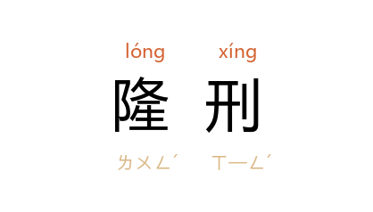 引《公羊传·僖公十九年》“其自亡奈何鱼烂而亡也” 汉 何休 注:“梁 君隆刑峻法,一家犯罪,四家坐之,一国之中,无不被刑者。”《后汉书·梁统传》:“议者以为隆刑峻法,非明王急务,施行日久,岂一朝所釐。”