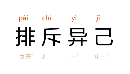 亦作“排斥异己”。 鲁迅 《华盖集·补白二》:“中国 老例,凡要排斥异己的时候,常给对手起一个诨名--或谓之‘绰号’。”