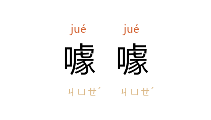 引《汉书·叙传上》:“谈笑大噱”唐 颜师古 注:“噱噱,笑声也。”宋 吴曾 《能改斋漫录·记诗》:“江 左有文拙而好刊石者,谓之詅蚩符,非此谓乎?噱噱!”清 褚人穫 《坚瓠八集·十遇词》:“遇新闻但博博,遇争是非但噱噱。”