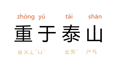 引《汉书·卷六二·司马迁传》:「死有重于泰山,或轻于鸿毛。」