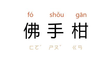 ⒈ 植物名。芸香科,常绿乔木,刺短小而硬。叶互生,长椭圆形,长十至十六公分。花有芳香,白色而厚。柑果前端作手指状分裂,为食品原料,并常供药用,果皮与花均可提取香油,以充香料。