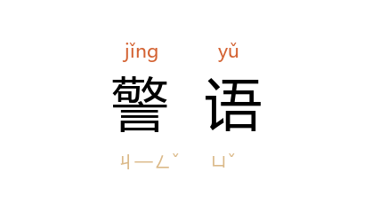 引宋 岳珂 《桯史·稼轩论词》:“余曰:‘前篇豪视一世,独首尾二腔,警语差相似。’”清 陆以湉 《冷庐杂识·冯侣笙诗》:“《苍梧留别邓星槎》云:‘与我相同惟宦况,赢君如许是乡愁。’皆为集中警语。”秦牧 《艺海拾贝·“果王”的美号》:“读 马克思 这些警语,尤其觉得意味深长。”