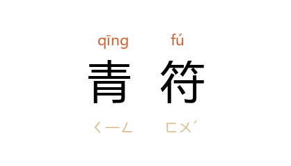 引晋 干宝 《搜神记》卷二:“汉武帝 时,殿下有怪,常见朱衣披髮相随,持烛而走。帝谓 刘凭 曰:‘卿可除此否?’ 凭 曰:‘可。’乃以青符掷之,见数鬼倾地。”《云笈七籤》卷三:“中三品总名簿録,检其上品,名不死之録……又名玉简青符。”元 无名氏 《碧桃花》第三折:“虚靖天师,覷贫道有仙风道骨,传授呪枣之术,及神霄青符,五雷秘法。”