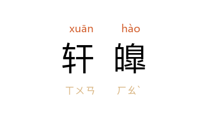 引南朝 梁 范缜 《神灭论》:“是以八采、重瞳, 勛 华 之容,龙颜、马口, 轩 皥 之状,此形表之异也。”南朝 梁 刘勰 《文心雕龙·正纬》:“若乃 羲 农 轩 皥 之源,山瀆钟律之要……无益经典,而有助文章。”