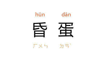 引《官场现形记》第三六回:“像他这样的昏蛋,居然也会碰着好人,真正奇怪。”鲁迅 《故事新编·采薇》:“都是昏蛋。跑到养老堂里来,倒也罢了,可又不肯超然。”瞿秋白 《文艺杂著续辑·美国的真正悲剧》:“也许那个昏蛋 菲列普史 坐在 亚列克森 的监狱里呢。”