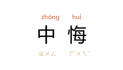 引汉 王充 《论衡·问孔》:“且本何善所见而使之王?后何恶所闻中悔不命?”南朝 宋 刘义庆 《世说新语·品藻》:“有人问 谢安石、王坦之 优劣於 桓公。桓公 停欲言,中悔曰:‘卿喜传人语,不能復语卿。’”北齐 颜之推 《观我生赋》:“忽成言而中悔,矫阴疏而阳亲。”清 蒲松龄 《聊斋志异·鸦头》:“赵 难中悔,加金付媪。”