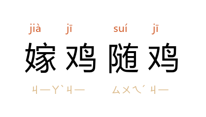 《红楼梦·第八一回》:「你难道没听见人说:『嫁鸡随鸡,嫁狗随狗。』那里个个都像你大姐姐做娘娘呢?」