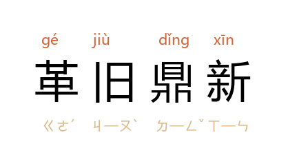 引明 李贽 《代深有告文》之二:“切以诵经者,所以明心见性;礼懺者,所以革旧鼎新。”柳隅 《<留日女学会杂志>题辞》:“是故社会上种种之积弊,使女子而有革旧鼎新之志焉。”