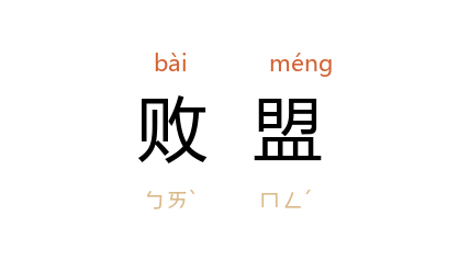 引宋·陆游〈湖水愈缩戏作〉诗:「今秋雨少烟波窄,堪笑沙鸥也败盟。」《醒世姻缘传·第一八回》:「说了死誓,不许败盟。」