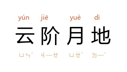 亦作“云堦月地”。 清 吴骞 《扶风传信录》:“诸女举娉婷闲雅,或歌或笑,香盈一室,真使人有云堦月地之想。”