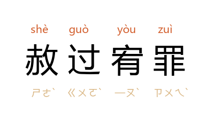 引《易·解》:“雷雨作,解,君子以赦过宥罪。”孔颖达 疏:“赦谓放免,过谓误失,宥谓宽宥,罪谓故犯。过轻则赦,罪重则宥,皆解缓之义也。”《晋书·孝武帝纪》:“思所以议狱缓死,赦过宥罪,庶因大变,与之更始。”明 张居正 《请宥言官疏》:“将仰庇量调外任,或降边方杂职,令其省改图报,则我皇上天宽地容之量、赦过宥罪之仁,将传之万世而有光矣。”