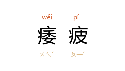 引明 李贽 《四书评·孟子·尽心上》:“孟子 之‘睟面’‘盎背’‘四体不言而喻’,方是‘践身’,他人都是疲癃残疾痿疲不仁之人。”张锺瑞 《土耳基立宪说》:“然人民之精神,苟不以全力注之,徒弄口头语言以为争辨,而行为进行或乃以逊懦痿疲出之,则其权利亦终无取得之一日,且反因此而获最大之痛苦。”