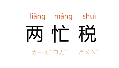 ⒈ 清雍正十三年规定征收田赋,分上下两期。上期从农历二月开征,五月截止,叫上忙。下期从八月接征,十一月截止,叫下忙。故有“两忙税”之称。